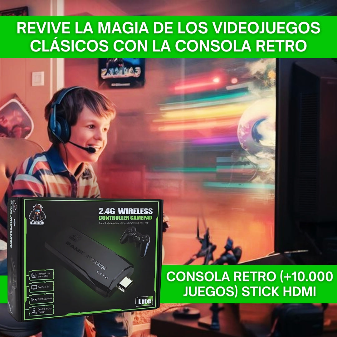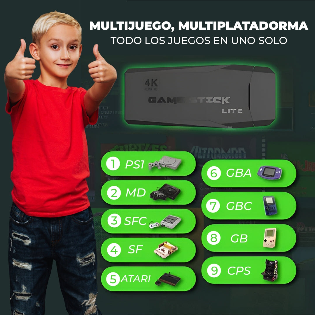 Olvídate de instalaciones complicadas. Solo conecta la Consola Retro Stick HDMI a tu televisor y empieza a jugar en segundos. No necesitas configuraciones avanzadas, simplemente disfruta de la mejor selección de juegos clásicos al instante.